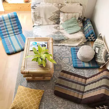 Thaikissen sind dein idealer Begleiter für mehr Entspannung im Alltag: Ganz egal ob beim Fernsehen, Lesen, Yoga oder als Gästebett für spontanen Besuch. Minimalisten schätzen die platzsparenden Allrounder schon längst, finde auch du deinen neuen Liebling. Unser Versprechen: Bei uns findest du ausschließlich handgemachte Unikate aus reinen und nachhaltigen Naturstoffen.