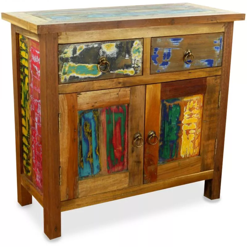 Java Teakholz-Kommode aus recyceltem, bunten Bootsholz, Nr.348