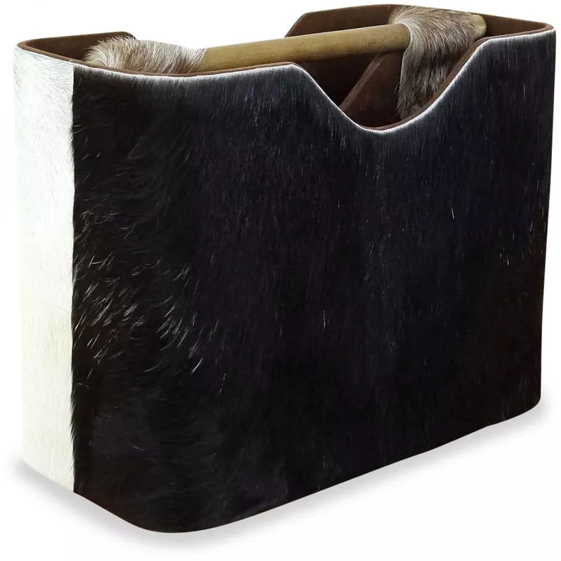 Ziegenfell - Zeitungskorb, Zeitungshalter, schwarz-weiß, aus Java (Indonesien)
