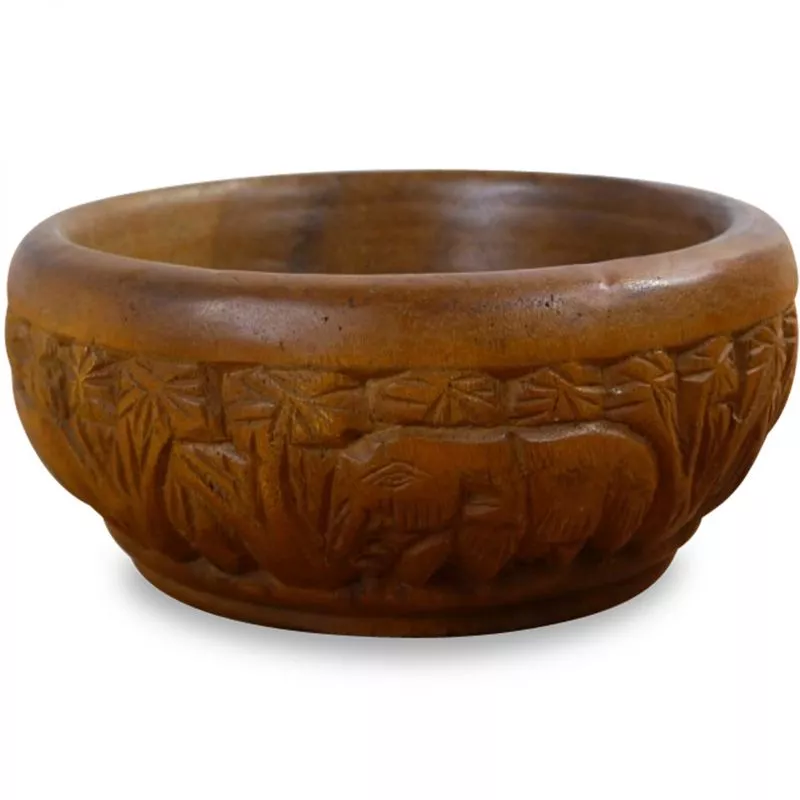 Massivholzschale Elefantenmuster